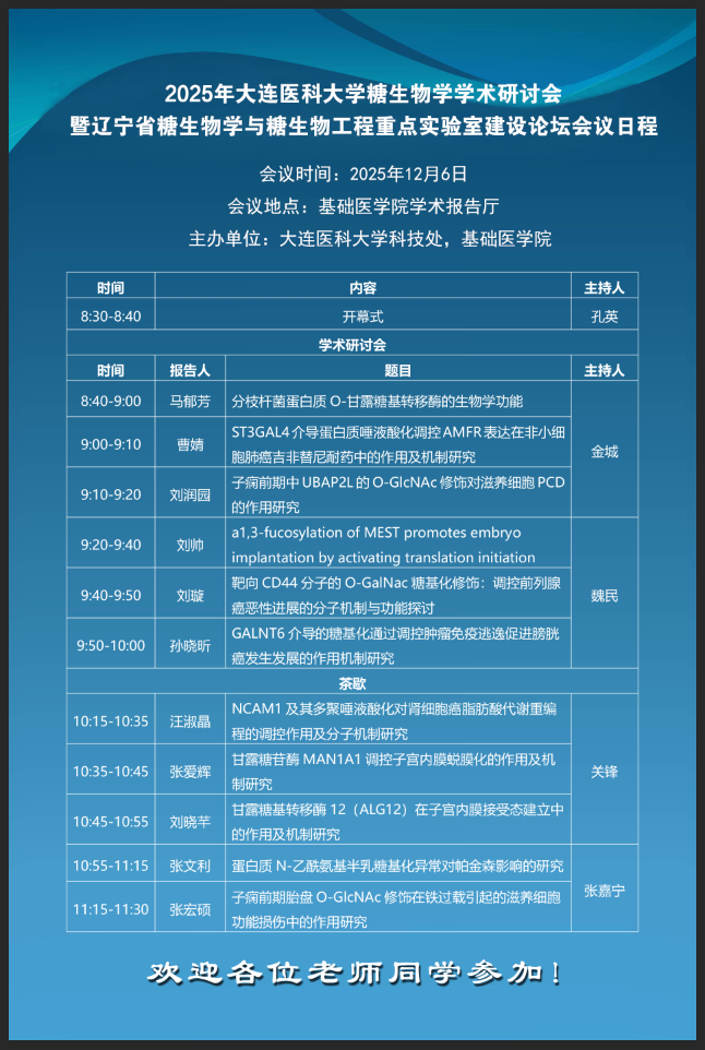 2025年大连医科大学糖生物学学术研讨会暨辽宁省糖生物学与糖生物工程重点实验室建设论坛